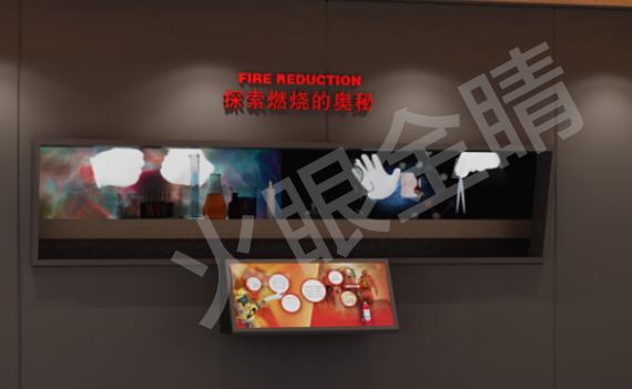燃燒與科學(xué)幻影成像是基于“實景造型”和“幻影”的光學(xué)成像結(jié)合,將所拍攝的影像射到布景箱中的主體模型景觀中,演示故事的發(fā)展過程。本產(chǎn)品是以“火災(zāi)防控”為主題,通過“魔術(shù)”和“科學(xué)實驗”表演方式的演示視頻,同實物搭建的試驗舞臺布景模型相結(jié)合,生動地將“火災(zāi)防控原理”的抽象概念具體化演繹出來,讓觀看者易于接受,學(xué)習(xí)相關(guān)知識。本展項共6組實驗視頻,逐一把火災(zāi)防控原理知識的方方面面漸層式地表現(xiàn)完整
