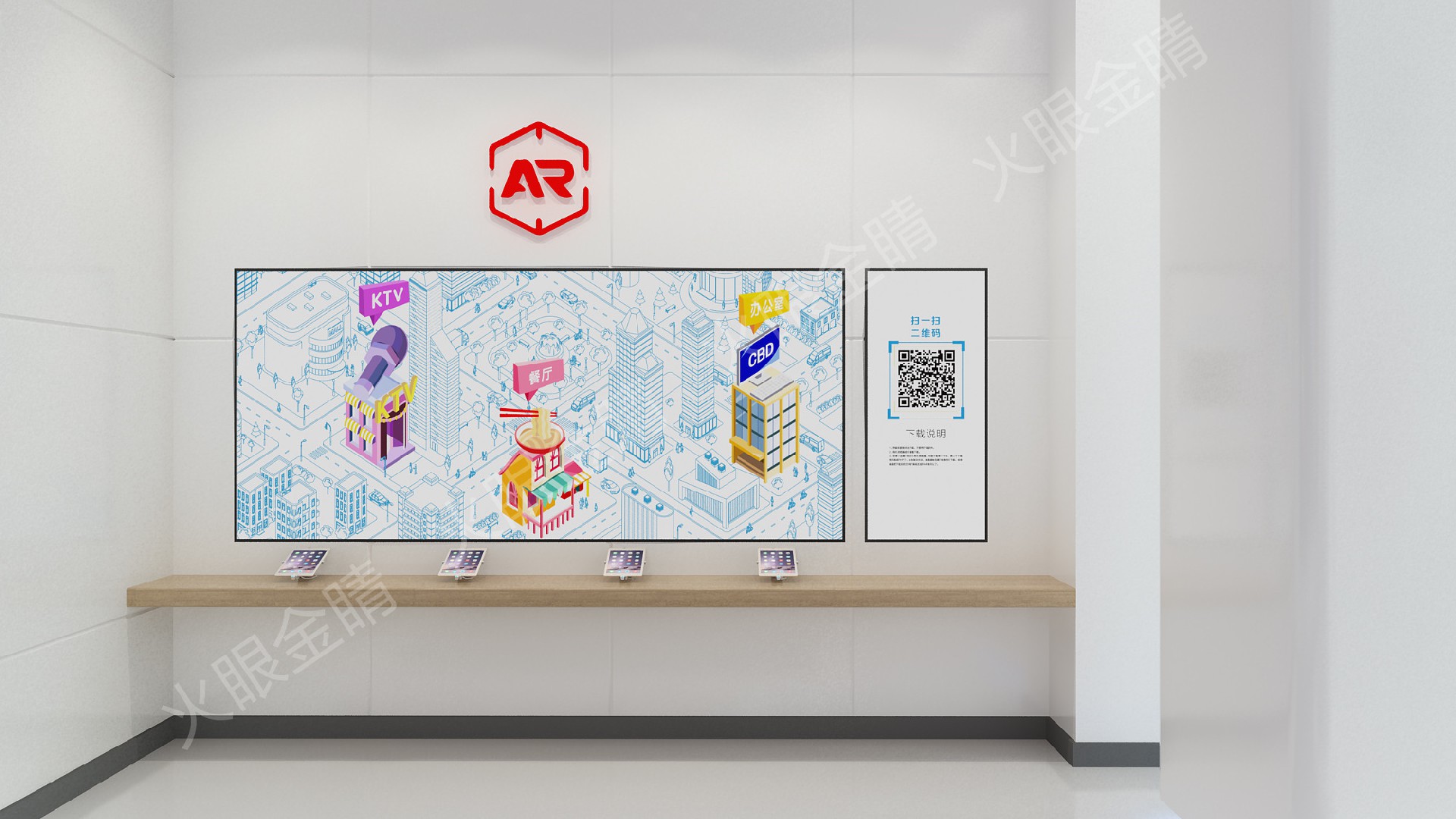 展示方式:顯示屏、平板電腦、AR識(shí)別卡