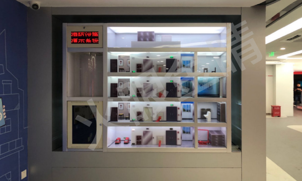 火眼金睛消防聯(lián)動設(shè)施展示系統(tǒng)通過互動臺面展示了常見的各類消防聯(lián)動裝置實物,按壓按鈕,同側(cè)的一體機(jī)播放聯(lián)動設(shè)備的介紹畫面。同時消防噴淋系統(tǒng)引入了水循環(huán)系統(tǒng),按壓按鈕,噴淋會自動噴水,演習(xí)噴淋滅火系統(tǒng)的工作原理及其它多組視頻畫面展示聯(lián)動各子系統(tǒng)的運行原理。