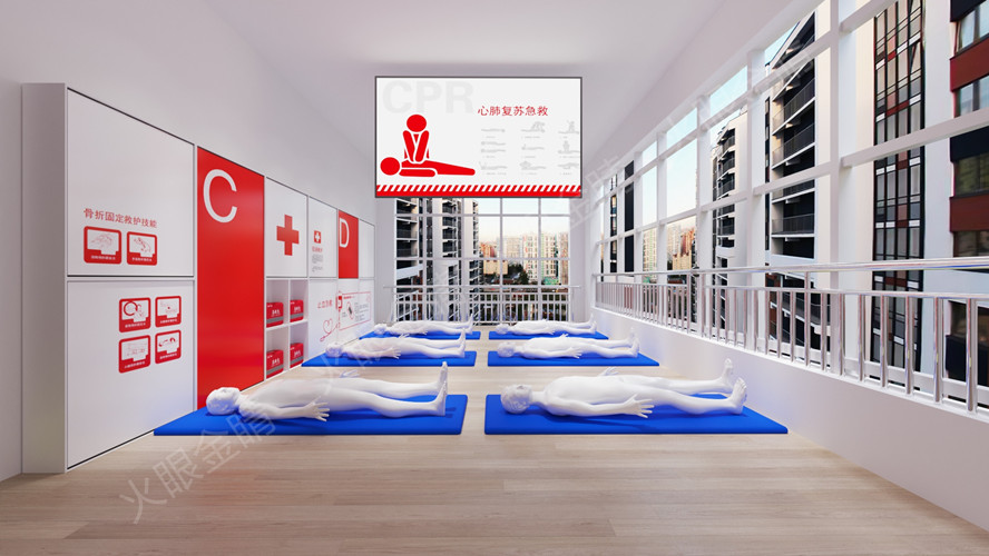 心肺復(fù)蘇救助體驗(yàn)裝置系統(tǒng),設(shè)置了模擬實(shí)物操作系統(tǒng),體驗(yàn)者按照指示對假人模型進(jìn)行心肺復(fù)蘇術(shù)操作,通過心肺復(fù)蘇體驗(yàn)系統(tǒng),掌握正確的心肺復(fù)蘇術(shù)方法和操作步驟
