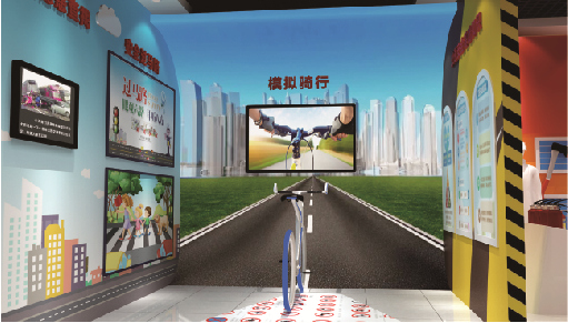 模擬非機動車駕駛系統(tǒng)采用三維投影技術,真實還原騎行過程中所遇到的各類問題,以及突發(fā)問題的解決方法,體驗者根據操作仿真自行車,模擬路面行駛過程,達到了解交通知識,掌握安全騎行方法的目的。