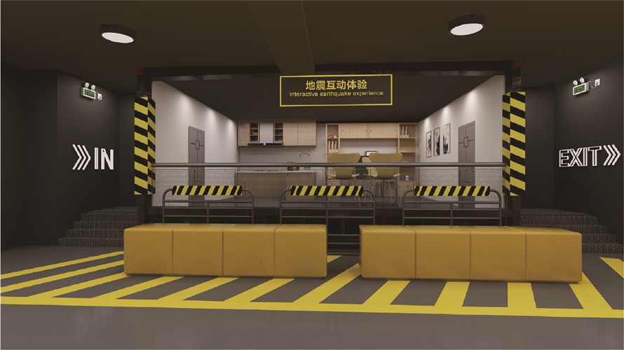 地震小屋通過(guò)家庭場(chǎng)景復(fù)原模擬傾斜倒塌的房屋廢墟場(chǎng)景,結(jié)合特效投影和音效,讓體驗(yàn)者步入地震小屋就能真實(shí)的感受到地震的巨大危害,同時(shí)地震小屋內(nèi)設(shè)置地震應(yīng)對(duì)方法內(nèi)容展板,可以了解更多的地震常識(shí)。