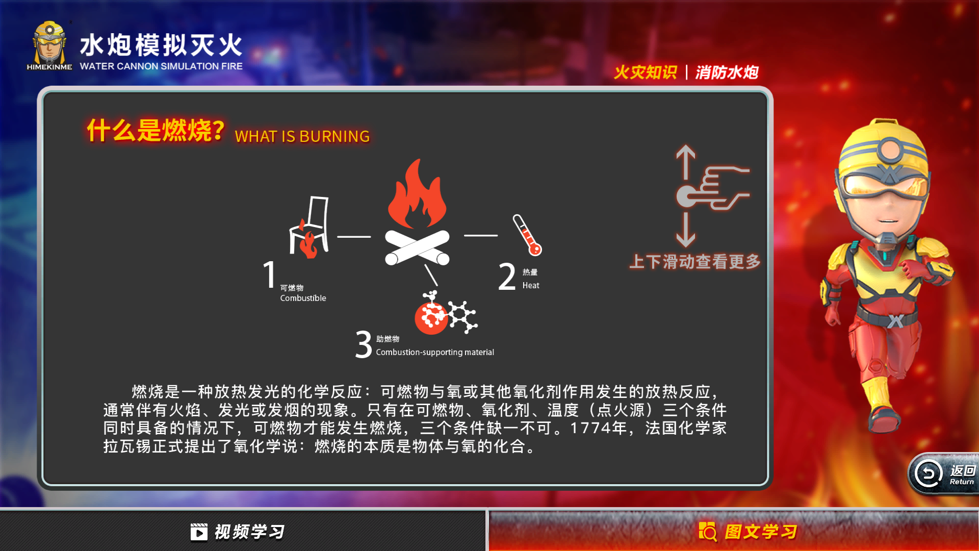 6、點(diǎn)擊“知識(shí)學(xué)習(xí)”可查看消防水炮的相關(guān)文字介紹與視頻知識(shí)。如圖4.7至圖4.8所示。
