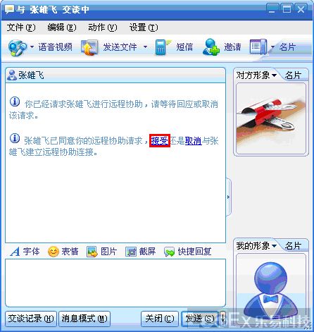 第三步:等待對方確認后,點擊再次彈出的確認對話框中的“接受”按鈕