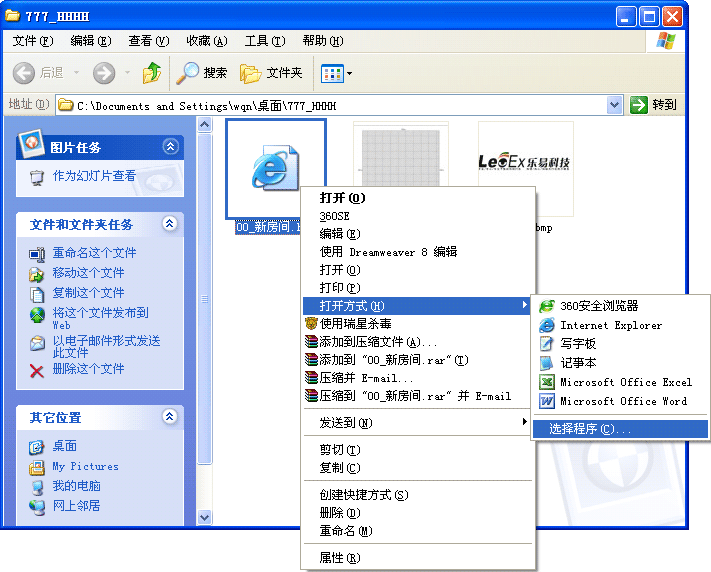 圖紙會有三個文件,右鍵選擇瀏覽器標識的文件,選擇打開方式/選擇程序。 如圖: