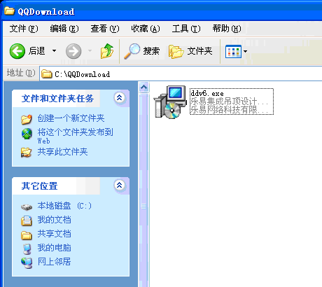 點擊完“文件夾”會彈出如下圖所示的對話框,只需雙擊“ddv6.exe”文件即可安裝軟件。