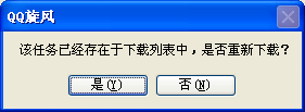 二.如果已經使用QQ旋風下載了軟件,再次下載的時候會彈出一個提示框,如圖:
