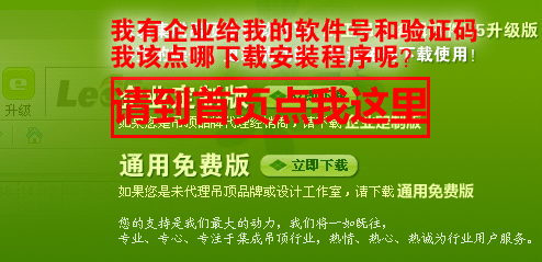 也許,你是一個(gè)剛代理某吊頂品牌的經(jīng)銷商,也許你是剛涉足集成吊頂行業(yè)的設(shè)計(jì)師,又或者你是一個(gè)想買集成吊頂?shù)南M(fèi)者,那么當(dāng)你需要使用我們的設(shè)計(jì)軟件時(shí),是不是會(huì)犯愁了,我該下載哪個(gè)安裝程序安裝呢? 今天,我們就為大家詳細(xì)說(shuō)明下,企業(yè)定制版和通用免費(fèi)版的區(qū)別: 企業(yè)定制版:顧名思義,是由企業(yè)出資,以品牌為單位定制的自定義產(chǎn)品數(shù)據(jù)庫(kù)的設(shè)計(jì)軟件。如果你代理了某吊頂品牌,同時(shí)企業(yè)給了你吊頂設(shè)計(jì)軟件的注冊(cè)軟件號(hào)、驗(yàn)證碼等資料,那么如下圖,下載軟件時(shí)你應(yīng)該點(diǎn)擊企業(yè)定制版對(duì)應(yīng)的下載按鈕。
