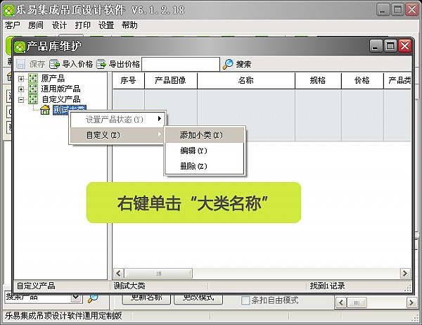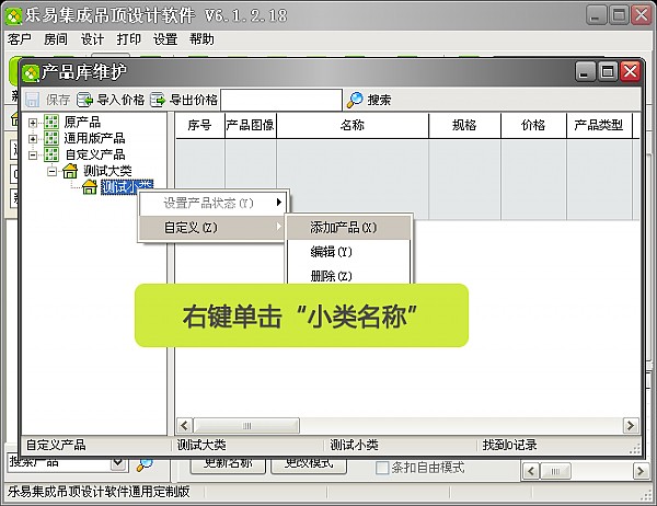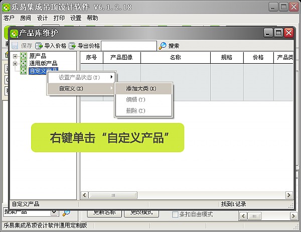 選擇“自定義產品”,并右鍵單擊=》“自定義”=》“添加大類”