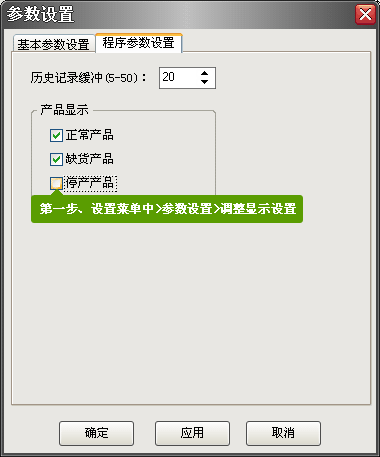 具體操作: 第一步:在設(shè)置菜單的“參數(shù)設(shè)置”中,將“產(chǎn)品顯示”中不需要顯示的產(chǎn)品分類前的勾選去掉。 第二步:在設(shè)置菜單的“產(chǎn)品管理”中,將對(duì)應(yīng)的產(chǎn)品狀態(tài)選擇為第一步中對(duì)應(yīng)的狀態(tài)即可。