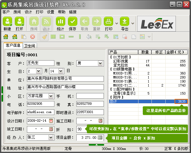 從V6開始,軟件支持自動折扣功能,只要設定了折扣率,軟件將自動根據總價和折扣計算項目金額;