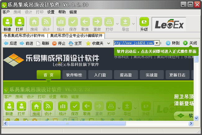 軟件啟動時,首先顯示的是一個網頁,點擊右上的關閉即可進入正式操作界面。