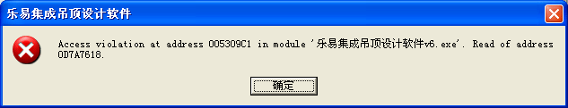 最近有部分用戶在使用樂易集成吊頂設計軟件V6時,偶爾會碰到如下圖所示的問題: